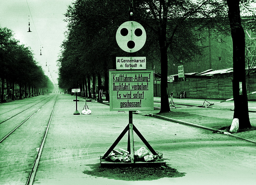 Frihedskæmpere i kamp i dagene efter befrielsen. Det var især danskere der var trådt i tysk tjeneste i E.T., Hipokorpset eller Schalburgkorpset og som ikke ville overgive sig. Deres situation var håbløs og nogle kæmpede desperat til det sidste. En del lykkedes det for, at slippe ud af landet til Tyskland forklædt som værnepligtig tysk soldat. Nogle lykkedes det for, at flygte til Sydamerika. Der blev etableret en "Flugtrute Nord", hvor man hjalp blakkede personer via Danmark til Sverige og herfra til Sydamerika. Tyskerne havde i god tid forberedt sig på situationen og havde etableret såkaldte varulvebander, man havde også forberedt sig ved at nedgrave våbendepoter i Danmark. Tyskerne hentede i øvrigt penge i Nationalbanken, som man delte ud til de værst belastede danskere. De fandt hurtigt ud af, at det ikke var særlig smart at have danske penge med sig, hvis det lykkedes at flygte til Tyskland. Det var bedre med værdigenstande som smykker, guld og diamanter. Danmark havde i øvrigt bøvl med, at få eftersøgte danskere udleveret fra Tyskland. Helt op i vore dage havde vi stadig 9 personer, som man ikke ville udlevere til rettergang i Danmark.