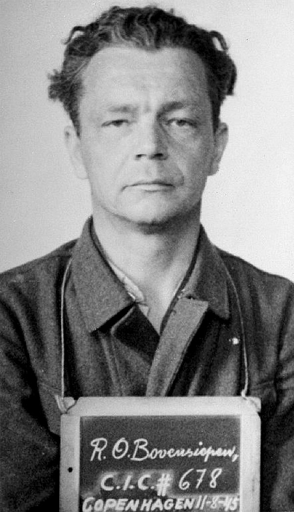 Bemærk her, at der på tavlen er anført C.I.C.#702 og C.I.C.#678. Hvad er det nu for noget. Jo, forklaringen er simpelthen den, at det er engelske krigsfanger. Englænderne havde oprettet deres Civil Interrogation Center på Alsgade Skole. De her personer er alt for prominente til at kunne overlades alene til de danske myndigheder. Kort efter befrielsen oprettedes Rigspolitichefens Efterretningsafdeling (REA), der havde som hovedopgave at efterforske og anholde efterlyste tyske krigsforbrydere og danske landsforrædere i forbindelse med retsopgøret. I den forbindelse etablerede REA et tæt samarbejde med de engelske militære myndigheder i Danmark. I juni 1945 oprettedes Civilian Interrogation Centre på Alsgades skole i København, hvor danske politifolk og briterne foretog afhøringerne af mistænkte krigsforbrydere og landsforrædere. De personer, der ikke blev ført til Tyskland af briterne, blev overtaget af REA, der sørgede for deres løsladelse eller videre behandling. REA foretog også eftersøgninger og afhøringer af mistænkte i Tyskland, hvorved de udsendte REA-folk kom i kontakt med de britiske og amerikanske besættelsesmyndigheder. Rigspolitiets Efterretningsafdeling - REA’s efterretningsvirksomhed Med REA’s fåtallige disponible mandskabsstyrke og de særlige opgaver i tiden efter befrielsen blev den egentlige overvågning af begrænset omfang. REA blev bl.a. forbindelsesorgan til Civil Interrogation Centre (CIC) på Alsgades Skole, hvor man sammen med briterne afhørte tyske krigsfanger. Fire afdelinger af REA blev etableret rundt om i landet ved de lokaliteter, hvor den britiske Field Security havde sine sektioner i Århus, Odense, Haderslev og ved Fårhuslejren. De af det danske politi anholdte spioner osv. blev erklæret allierede krigsfanger og indberettet til REA, som derpå fordelte dem på enten CIC eller en af de fire afdelinger. Først i 1946 afvikledes CIC og samarbejdet med den britiske Field Security. Samtidig fik REA til opgave at indsamle oplysninger om krigsforbrydelser og krigsforbrydere, og man overtog fra modstandsbevægelsen Centralkartoteket. Dette kartotek var udarbejdet af et udvalg under Frihedsrådet og indeholdt navnene på omkring 21.000 personer, der formodedes at have udført landsskadelig virksomhed. Det såkaldte Centralkartotek kom dog aldrig i anvendelse. Modstandsbevægelsen havde sine egne optegnelser og fik ikke kopier af Centralkatoteket. Derfor blev der anholdt over 40.000 personer, man måtte snart løslade de fleste. Alene 12.000 fik en dom.