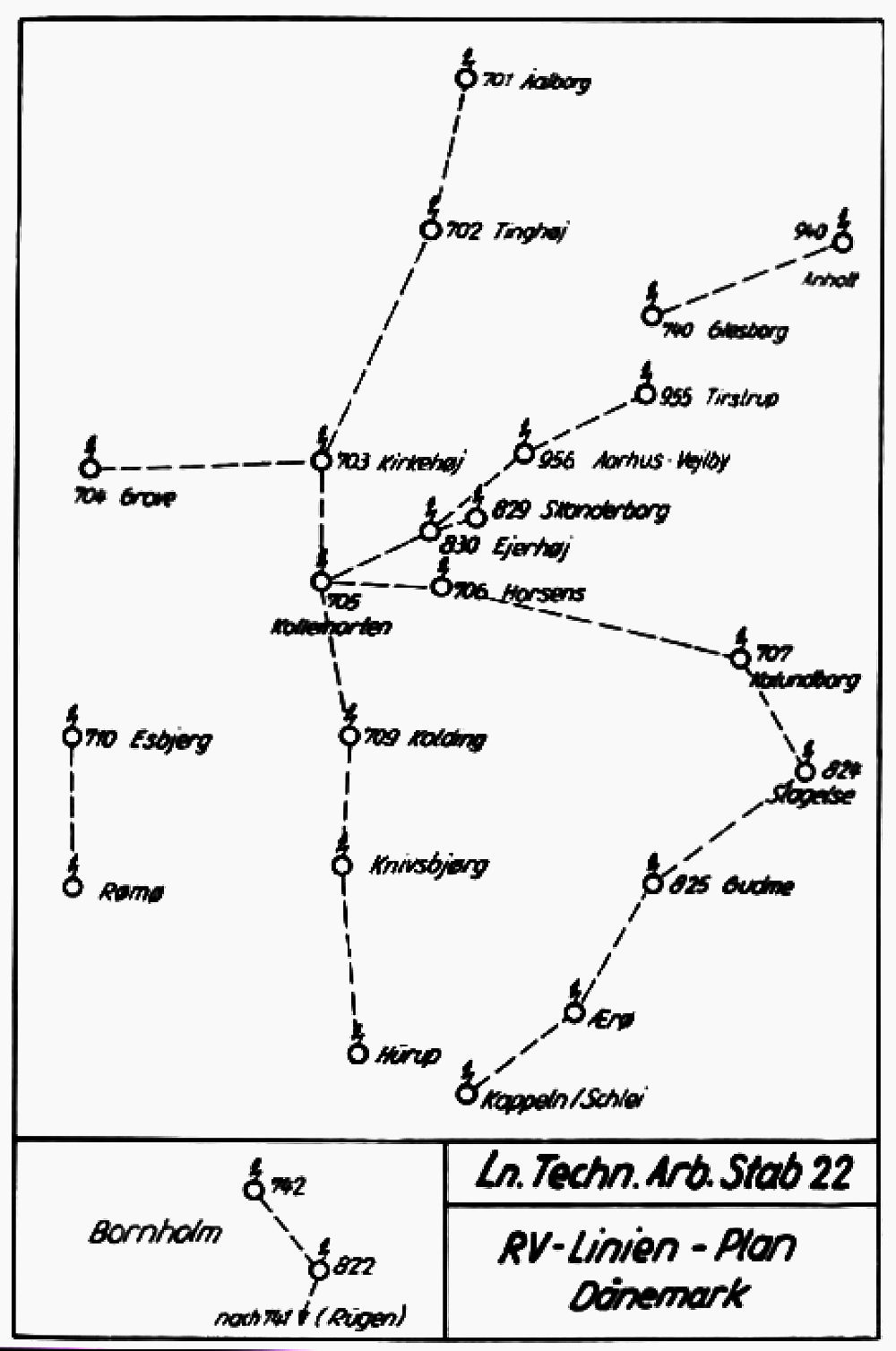 Her er par billeder mere af de tyske RV (Richt Verstärker) anlæg. Jeg beklager den elendige billedkvalitet. Jeg ved det ikke, men meget - efter placeringen at dømme - tyder på at disse anlæg er anvendt er anvendt i forbindelse med overvågningen af luftrummet. Tyskerne havde opført flere plotteanlæg i Danmark, som var noget af krigens ypperste i teknisk henseende. Der er heller intet i vejen for, at anlæggene har kunnet anvendes til radionavigation. Med mit kendskab som radioamatør til placeringen af linktårne (de fleste er nedlagt i dag) og radiorepeatere kan jeg ud af kortet se, at det er velkendte positioner langs den jydske højderyg og på andre høje punkter. Måske ved nogen noget mere og vil sende mig en mail.  Her er vi på Hammerknuden. Tyskerne havde opstillet denne mobile radarstation. Så kunne man i god tid opdage allierede flyvemaskiner der var på vej på bombetogter til Tyskland. Der er også opstillet en VHF-antenne så man har kunnet kommunikere til radiokædetårnet på Rytterknægten og herfra videre til Rügen. I min tid på Bornholm, bad jeg ofte om at vi kørte her ud med vore radiovogne (kortbølgeudstyr). Jeg skulle nok tage alle aften- og nattevagterne, så mine kammerater kunne tage på pigesjov i Sandvig-Allinge. Jeg fik tid til at lave alle mine tekniske opgaver til min teknikereksamen. Fik tid til at snakke med en masse radioamatører på kortbølge (det havde jeg tilladelse til, når jeg havde licens). Jeg drak en masse the på radiovognen, så en morgenstund måtte jeg ud for at lade mit kurfyrstelige vand i terrænet. Døren op og skrue op for højttalerne, så jeg kunne lytte med på frekvensen om vi skulle blive kaldt op. Der var ikke megen aktivitet her ved morgengry, men kommunikationsforholdene skifter dramatisk med hensyn til rækkevidde. Vi skulle på denne øvelse holde kontakt med NATO hovedkvarteret, som dengang var placeret ved Paris i Frankrig. For at der kunne blive lidt kommunikation ud af det var det aftalt, at nogle danske telegrafenheder med samme opgave som vores var med. Det handlede om, at vi kunne holde forbindelse uden problemer hele døgnet og vi havde derfor på min anbefaling kørt herop og etableret et større antenneanlæg med hele 3 radiomaster. Vi havde flere mobile enheder, men til denne øvelse kørte vi kun med en enhed. Der lå dengang et hotel her, men jeg tror faktisk det var lukket ned. Her havde vi dog mulighed for via en kronemuffe at koble os op med telefoncentralen i Rønne og så få etableret faste telefonforbindelser til de øvrige danske telegrafenheder og til kasernen, så vi kunne bestille mad og så videre. Vores opgaver var telegrafikommunikation indenfor det nyetablerede COMBALTAP, ASAC og VARSLING. Udstyret var det samme og telegrammerne var kodet i 5 bogstavsgrupper - altså det rene nonsens for telegrafisten. Vi sendte dog også telegrammer i klart sprog for, at det ikke skulle blive for trælst. Det havde vi megen spas ud af, da vi selv fabrikerede dem og jeg havde sans for at give dem et indhold, så man troede den 3.de verdenskrig var under opsejling. De skulle blot skrives i den militære sjargong og med de rigtige forkortelser. Militæret havde en trang til at give al ting forkortelser - hvilket kunne blive ustyrligt morsomt. SITREP (situationsreport) - UMAK - (undervisningsmaterielkontor) og mere fra samme latterlige vokabularium. ACBA: Allied Command Baltic Approaches (NATO), ADOC: Air Defence Operations Center (NATO), AIRBALTAP: Allied Air Forces Baltic Approaches (NATO/PfP), AMF: Allied Mobile Force eller Amfibe (NATO), ANGMD: Angrebsmand, BGP: Begravelsesplads, BHM: Bornholms Marinedistrikt, BLP: Beach Landing Point, BM: Befalingsmand, BOMREP: Rapport om virkning af FJ flybombning, BR: Bornholm Region, BRDU: Brevdue (Vi havde faktisk sådanne på kasernen som en civilarbejder passede), BSO: Beredskabsområde, BST: Bedriftssundhedstjenesten eller Bestemmelse, BT: Batteri, BTN: Bataljon, BUSL: Bus let ('rugbrød' - det er et folkevognsrugbrød der tænkes på) - og sådan kan man blive ved og ved - der er et par tusinde af dem.