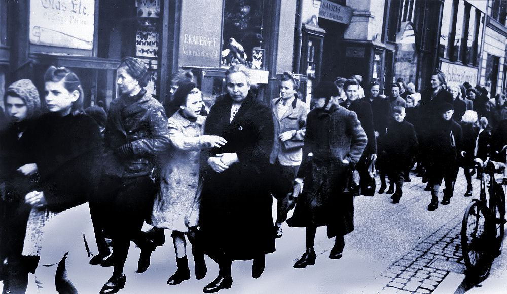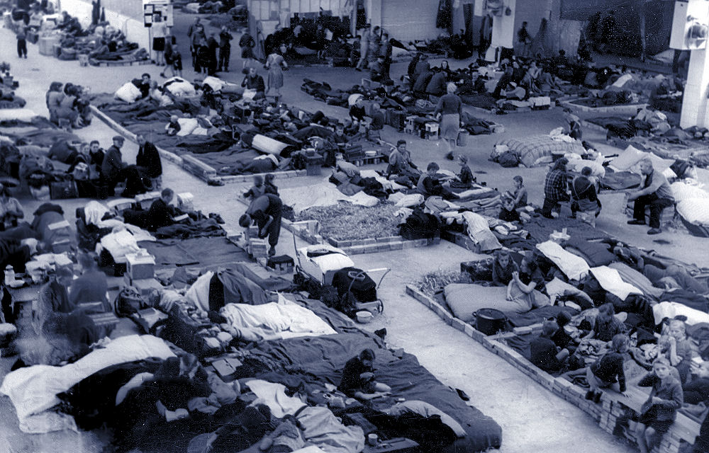 Så kom de strømmende i hobetal fra foråret 1945. De flygtede fra de fremrykkende sovjetiske styrker. Deres byer var blevet tæppebombet af de allieredes bombetogter. Byer som Berlin, Dresden og Hamburg var ruinhobe. De flygtede over Østersøen på den tyske marines skibe. Mange af disse skibe blev sænket af allierede flyvere. De flygtede over vandet i alt, hvad der kunne sejle. Det gik rigtigt galt og mange nåede aldrig i land, men druknede. Så kom de op over grænsen. Hamburg var blevet bombet. Det i en sådan grad, at der opstod en fladebrand og hele byen brændte op i et inferno af flammer. Alt kan brænde når temperaturen bliver tilstrækkelig høj. Der var hungersnød, så man fortærede alt hvad man kunne få fat i. De var i en rædsom forfatning og mange plaget af sygdom. Vi så dem, men der manglede nogle. Det var enlige kvinder med en børneflok. Ældre enlige kvinder og ældre enlige mænd. Unge mænd var der stort set ingen af. De var døde i krigen og 5 millioner tyske soldater var taget som krigsfanger. Vi ville ikke vide af dem. Det var deres egen skyld og de havde været onde mente vi. Danske læger var ikke meget for, at hjælpe de syge og børn døde i hobetal. De blev indkvarteret på skoler, i gymnastiksale og hvad der kunne skaffes. Senere oprettede man flygtningelejre til dem. Vi modtog i alt 250.000 tyske flygtninge. De måtte ikke komme uden for lejrene - så her var de indespærret i flere år. De gav ikke op. Tyskere er nøjsomme, flittige, arbejdsomme og forstår at overleve. De organiserede sig i lejrene. Gav børnene undervisning. Sørgede for at dagligdagen ikke blev for trist og mørk. Det viste sig også, at tyskerne - som vi kan høre det i det tidligere Østtyskland D.D.R.´s nationalsang: "Et fædreland rejst på ruiner". De forbavsede os alle. De gennemførte et Wirtschaftswunder og blev Europas stærkeste økonomi. Jeg har et utal af bøger og store billedværker om besættelsestiden. I en af dem er der en serie billeder af nogle tyske kvinder, der er kommet til grænsen med deres børn. Nogle danskere kaster nogle få kartofler og nogle kartoffelskræller i grams til dem. Der bliver slagsmål mellem dem, mens de kæmper for at få stillet deres hunger. Det morede nogle af os over den gang. Et par enkelte folkekirkepræster tog deres kald alvorligt og afholdt gudstjenester, bisættelser og begravelser med videre for dem i lejrene. Det krævede mod. Danske læger, der ikke tog deres lægeløfte alvorligt og undlod, at yde assistance har død på samvittigheden. Børnene havde vel ikke også været onde? Det er et trist kapitel i Danmarkshistorien.