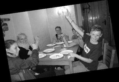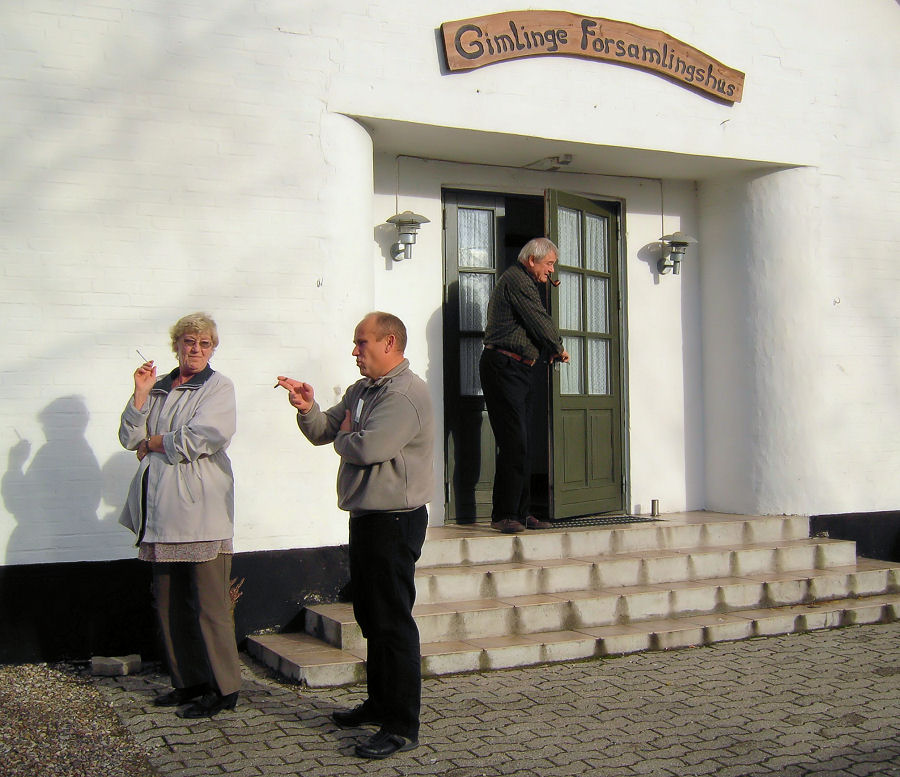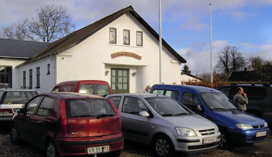 Vi takker af og forlader forsamlingshuset i Gimlinge. |