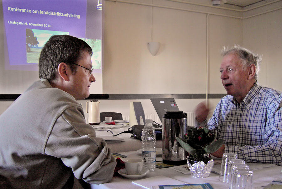Her formanden for K.L.R. - Kontaktrådet for LokalRåd i Slagelse - Lars Schou Pedersen t.v. og formanden for L.A.G. - Landudvikling Slagelse - Jørgen Damgaard t.h. ved morgenmaden |