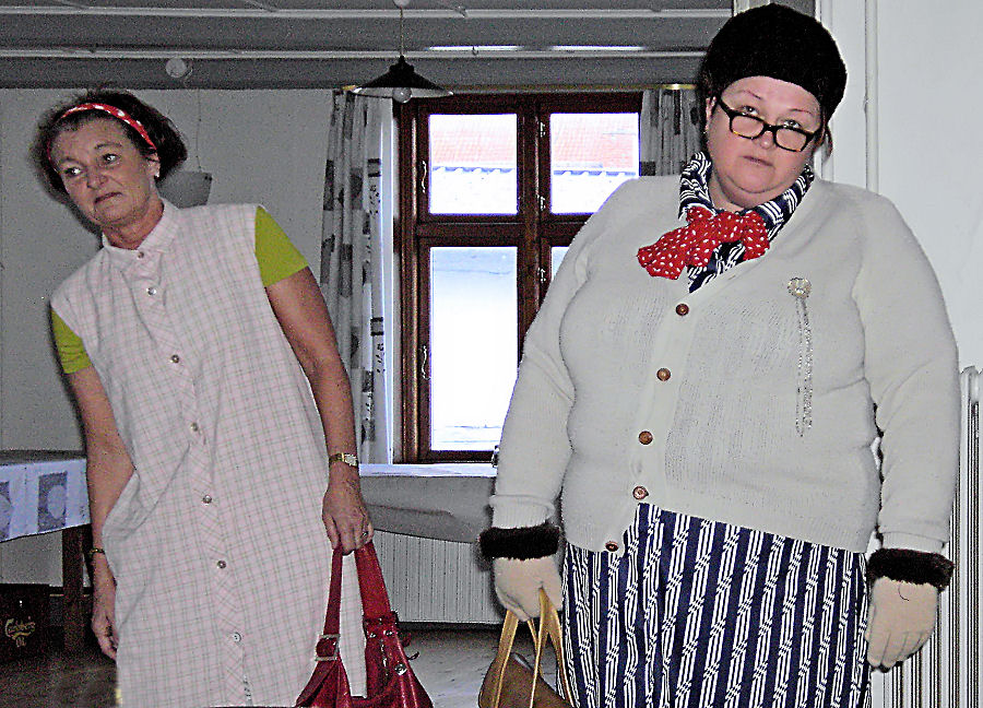 Så var der nogle rigtig gode revynumre. De to damer havde vundet 1. præmie i en revykonkurrence. De kom fra Vojens. Det var helt afsindigt morsomt. Her er det begrænsninger i Åbenrå (Apfenrade) kommunes julefrokostarrangement der er til drøftelse - der skal tages etniske og andre hensyn til minoritetsgrupper - der gør at traktementet ender i luft og vindfrikadeller. Det er svært når der er muslimer, jøder, homoseksuelle og folk på antabus med videre, der skal rettes ind efter. |