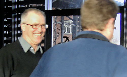Vi får lige en rygepause. Vejret er flot, men det er sk... koldt! Jeg fik en lille sludder med Michael Gram om problemer i landdistrikter. Jeg nævnte Ledøje-Smørum, hvor jeg var ansat i 15 år og hvor min viv er vokset op og også var ansat samme sted som mig. Michael havde bekendte i Smørum - det gav lige en fælles referenceramme. Vi var enige om, at kommunale grunde skal kommunen selv byggemodne i små størrelser ad gangen og bruge indtægterne til næste lille størrelse. Aldrig noget med at sælge et kæmpeareal til et 10-20 års projekt, som i de gamle bilfærgelejer på Halsskov. "Nu tager det årevis med en retssag og vi fik kun 5 millioner kroner for det. Så skulle de lige levere noget af betalingen i form af infrastrukturtiltag." - sagde Michael. Vi er ganske enige.