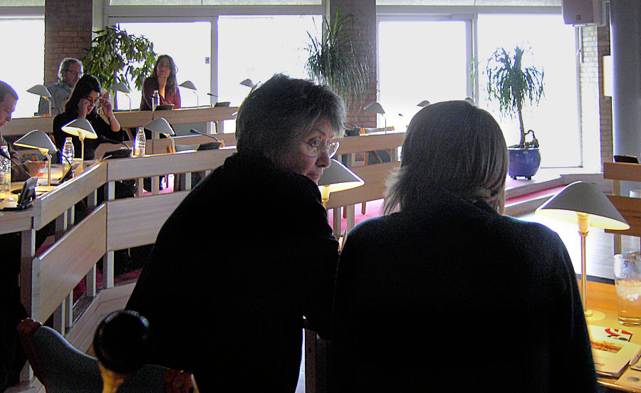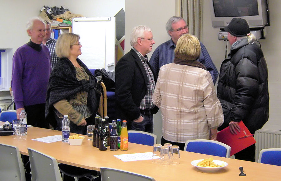 Deltagere får en rask lille drøftelse. Vor sekretær holder sig ikke tilbage. |