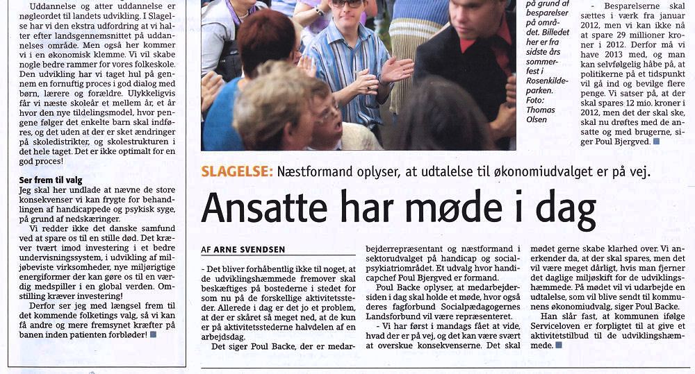 NYHEDSBREV Fra Kontaktudvalget for Lokalråd i Slagelse Kommune (KLR) 24. januar 2010 Bestyrelsen har d. 14. januar holdt møde, hvor vi bl.a. talte om placeringen af Landsby- & Lokalrådene i kommunalt regi. Nedenstående er at læse i Styrelsesvedtægten for Slagelse Kommune: § 13. Plan- og Udviklingsudvalget består af 5 medlemmer. (Udvalget består reelt af 7 medlemmer, idet der henvises til Styrelseslovens § 27, stk. 1-3). Stk. 2. Udvalget varetager den umiddelbare forvaltning af en helhedsplanlægning for kommunens samlede udvikling indenfor erhvervs, turistmæssige og lignende anliggender der vedrører kommunens indsats i forhold til turisme, og administration af kommuneplanlovgivningen. Derudover har udvalget ansvaret for udarbejdelse af forslag til · Kommuneplan · lokalplaner (igangsættelse og udarbejdelse af lokalplaner) · udbygningsplaner · boligbyggeprogram og befolkningsprognose · bygge- og boligforhold · jordforsyning (anlæg, handel med bolig- og erhvervsarealer) i samarbejde med Økonomiudvalget, jf. § 10. · erhvervsservice og iværksættere · virksomhedsservice · byfornyelse og bygningsbevaring · landdistriksudvalg herunder LAG (Landudvikling Slagelse) og KLR · særlige udviklingsprojekter vedrørende yder- og landdistrikter, (lokale udviklingsplaner) · lokale, kommunale puljer til fremme af initiativer og aktiviteter i landdistrikterne Stk. 3. Udvalget fremsender forslag til Byrådet om planer i relation til ovenstående i samarbejde med Økonomiudvalget, jf. § 10, overordnede strategier, herunder erhverv, turisme, detailhandel og bosætning i samarbejde med Økonomiudvalget, jf. § 10. Vi er altså placeret under Plan- og Udviklingsudvalget der består af følgende medlemmer: Flemming Erichsen - formand, Ole Drost - næstformand, Helle Blak, Steen Olsen, Ib Larsen, Niels Jørgensen & Michael Gram. Både Flemming Erichsen og Steen Olsen har vi jo haft et fortrinligt samarbejde med i de forløbende år, gennem Udvalget for Demokrati og Politisk Udvikling (DPU). Vi håber naturligvis det gode samarbejde og den udmærkede dialog vil fortsætte i det nye udvalg. Bestyrelsen vil tage kontakt til Plan- & Udviklingsudvalget for et møde i marts/april. Hvis Jeres Landsby- eller Lokalråd har emner der bør tages op på dette møde, så skriv til undertegnede på klrslagelse@gmail.com. NYHEDSBREV Fra Kontaktudvalget for Lokalråd i Slagelse Kommune (KLR) 6. juni 2010 På bestyrelsesmødet d. 27. maj diskuterede vi dialogen med Forvaltningen, eller rettere manglen på dialog. Bestyrelsen har d. 23. marts sendt en mail til Forvaltningen, med ønske om foretræde for Plan- & Udviklingsudvalget i forbindelse med deres ordinære møde d. 4. maj. I referatet fra Udvalgsmødet d. 6. april kan følgende læses: 4. Dialog med landdistrikterne Sagens indhold Plan og Erhverv overtog med virkning fra 1. januar 2010 opgaverne i forhold til landdistrikterne. Der er tale om følgende opgaver: Driftstilskud til lokal- og landsbyråd Projektstøtte til lokal- og landsbyråd Økonomisk støtte til LAG (Landudvikling Slagelse) Dialogen med aktørerne i landdistrikterne Administration af markedstelte Forskellige igangværende projekter: Årets landsbyindsats Den blomstrende landsby Udviklingsplaner Stier og legepladser Diverse medlemskaber