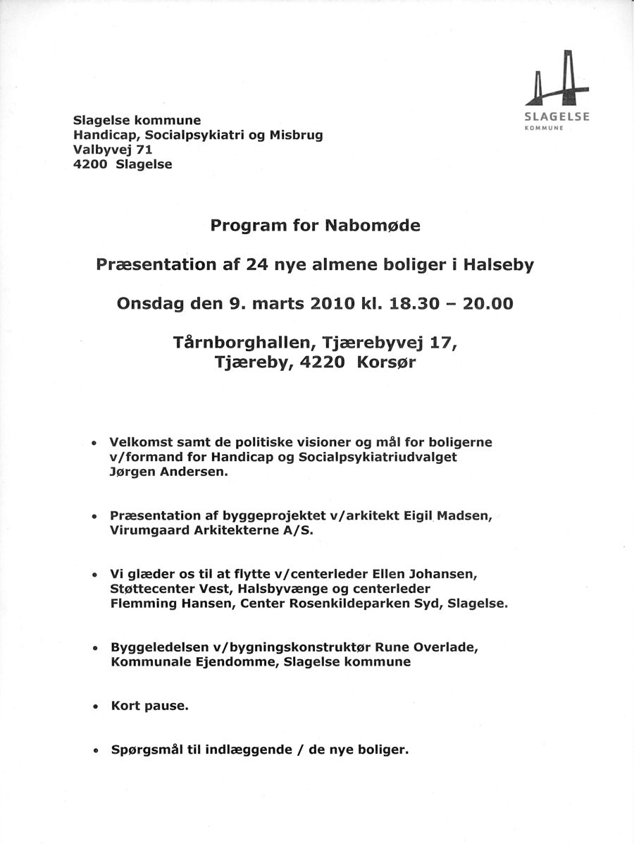 november 2010. Konferencen arrangeres i samarbejde med Plan- og Udviklingsudvalget, Landudvikling Slagelse samt KLR (Kontaktudvalget for Landsbyrådene). Der afholdes 2 årlige møder med KLR.