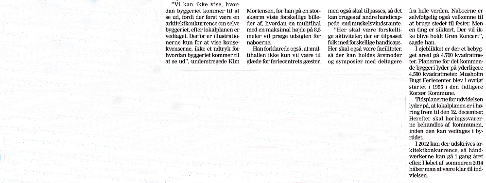 Udbygningen af feriecenteret skulle jo endeligt vedtages på byrådsmødet i dag den 26. marts 2012.