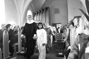 Det er også webmasters holdning, at der ikke er nogen børn der kan tage skade af denne undervisning og få lidt kendskab til etik og moral, kirkens ritualer og vore salmer. Det er ikke nemt for folkekirken, der her mødes af ateisternes aggressive krav om et værdineutralt offentligt rum - og her betegner man Jesu ord om de små børn som åndelig pædofili. Det er groft og helt ude af proportioner, at betegne den undervisning minikonfirmander får som åndelig voldtægt, hjernevask eller krænkelse af vore børn. Her er vi på lige fod med den frelsthed og mangel på tolerance, man finder hos antirygerne med deres krav om et røgfrit miljø. Det er for nogen vældigt rart, at høre til de frelste og at kunne jage andre med sine ufejlbarlige argumenter. Jeg er selv blev overfuset på det groveste i Kongegårdshaven af disse intolerante fanatikere, hvor det er tilladt at ryge. Selvfølgelig skal folkeskolen ikke anvendes til at missionere for folkekirken. Det ville hverken tjene folkekirkens eller folkeskolens sag. De nøgne kendsgerninger er, at flere og flere forlader folkekirken. Mange kirker står tomme. Affolkningen i landsbyer og landdistrikter gør det rigtigt svært for folkekirken. Det er trist. men sandt, at vort samfund bliver mere og mere verdsliggjort (sekulariseret hedder det med et fremmedord). Flere og flere har intet kendskab til kristendommen og dens anvisninger på, hvordan vi mennesker skal omgås med hinanden og handle overfor hinanden, så at vi alle i det daglige liv kan holde ud at være her. Det er den der med, at du skal elske din næste som dig selv. Min generation er opdraget med en masse holdninger til og anvisninger på, hvordan vi skulle opføre os, hvis vi skulle være anstændige mennesker. Denne opdragelse eller indpodning fik vi fra forældre, de voksne i al almindelighed og vore skolelærere. Det hele havde sin rod og sit fundament i kristendommen og dens etik og moralbegreber. Vi var et kristent samfund og vi opfattede alle det her, som en ganske selvfølgelig og naturlig ting i vor dagligdag. Der går skred i et samfund til det værre, når dette fundament glider ud af vor dagligdag - det er bare min beskedne mening. Jeg føler og mærker en generation af egoistiske mennesker, der kun har interesse for deres eget ve og vel og er kolde over for deres medmennesker og disses problemer. Eller tager jeg fejl? Det kræver praktiske anvisninger fra folkekirken om, hvordan det skal gøres i dagligdagen. Det er også svært for folkekirken - eksempelvis - at skulle forklare buddet om, at man ikke må slå ihjel, når præster rask væk kan tage med danske soldater til fremmede steder og egne og se soldaterne slå mennesker ihjel og det end og mennesker, der aldrig har krummet et hår på de danske soldater eller velsigne F16 jagerfly, der drysser bomber og missiler over mennesker. Mange menighedsråd går mere op i at spendere penge på bygningsvedligeholdelse end at engagere sig i at arbejde for en fornyelse af kirken, så dens budskab kommer folk ved og taler til dem. Det hedder forkyndelse og det er kirkens hovedopgave. Det er ikke præsternes opgave, at bevare kirkerne og deres egne embeder - det er et kald at være præst - eller burde være det. Her er det Jesu ord om næstekærligheden ikke kun i ord, men også i gerning der er det centrale. Lad bare de små børn komme til præst - her sker dem intet ondt. Hvis nogen mener noget andet, må det være en sag mellem forældre og kirke om deres børn skal være minikonfirmander. Det her blev jo til en helt lille prædiken, men det er vel heller ikke så galt. Webmaster den 14. marts 2012 | |||