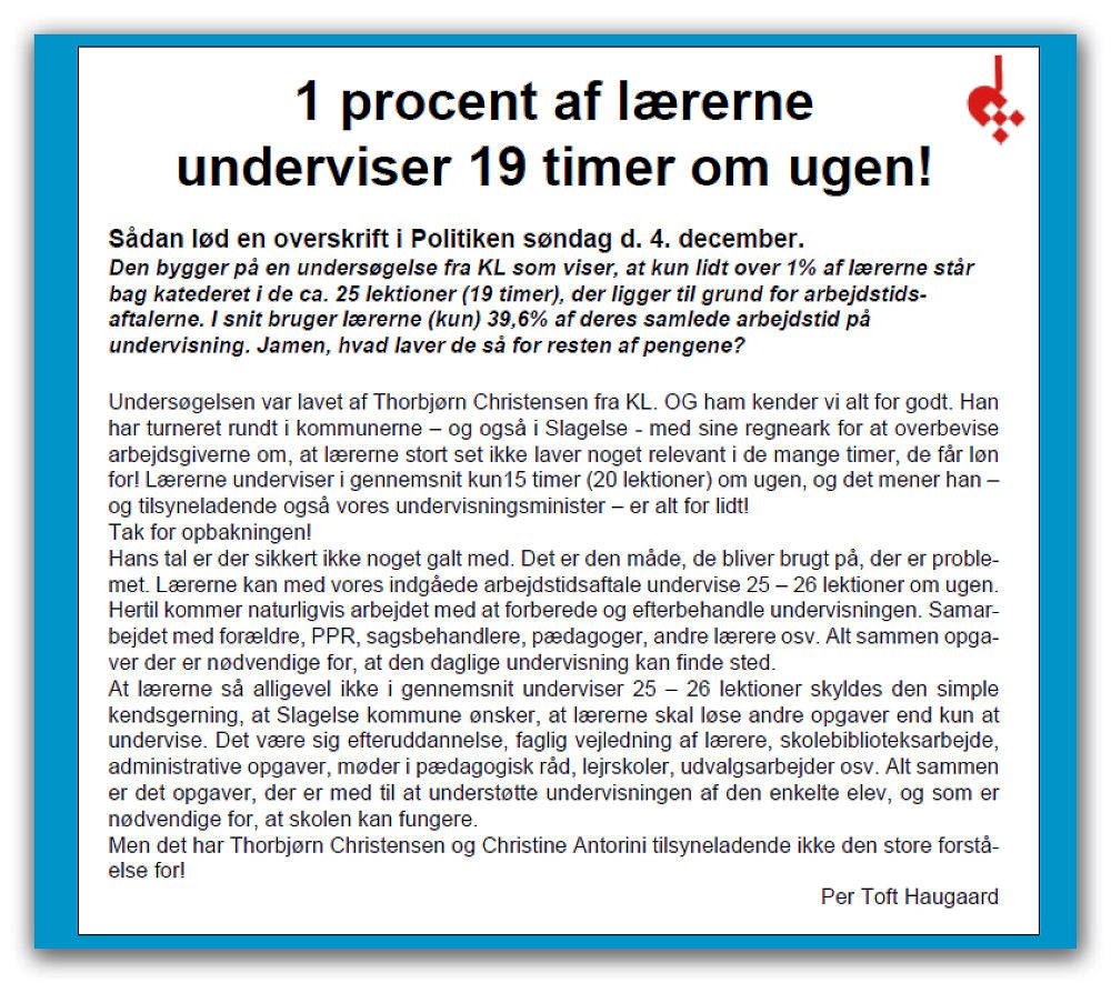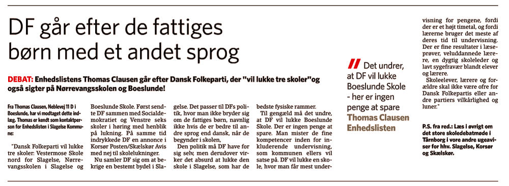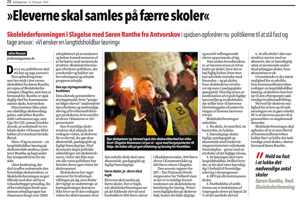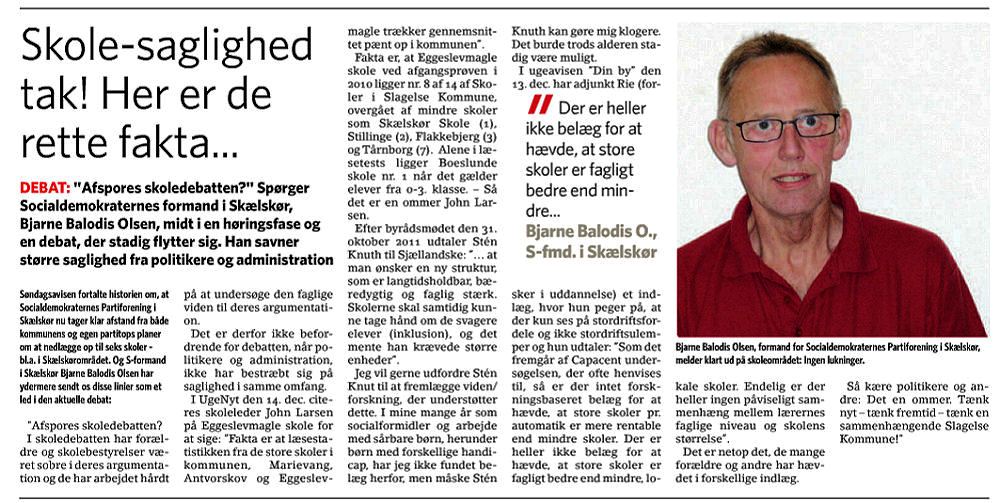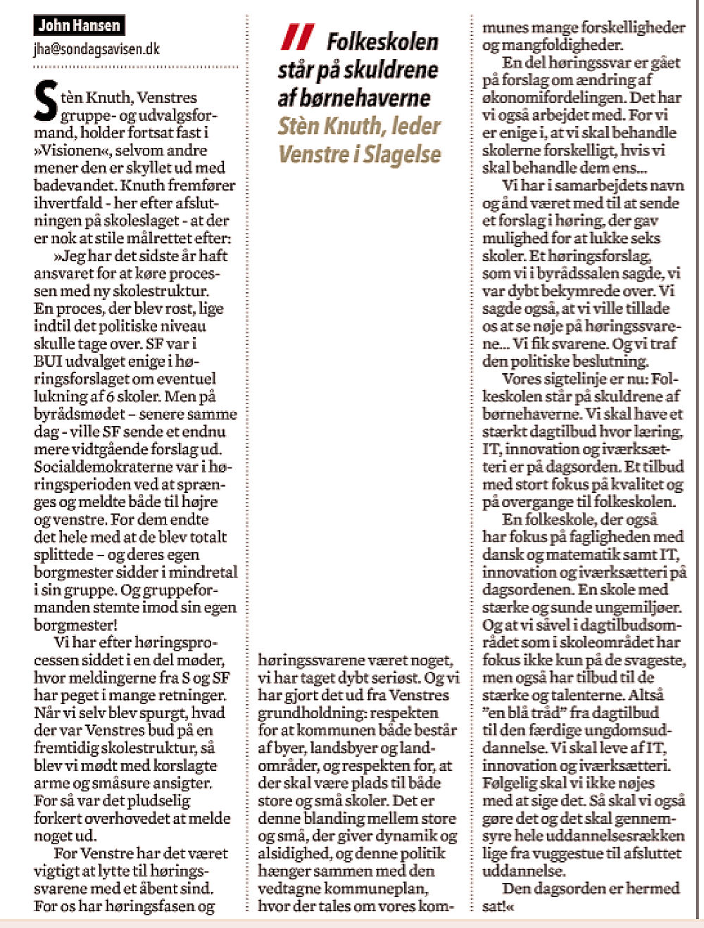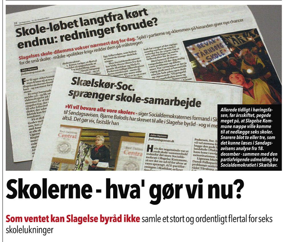 Jørgen Andersen (SF), som du ser på billedet ovenfor og som har den modige mening, at man bør få lukket nogle skoler, når man har for mange af disse og alt for få elever i Slagelse kommune - har sendt mig et par kommentarer til den håbløse situation på skoleområdet: