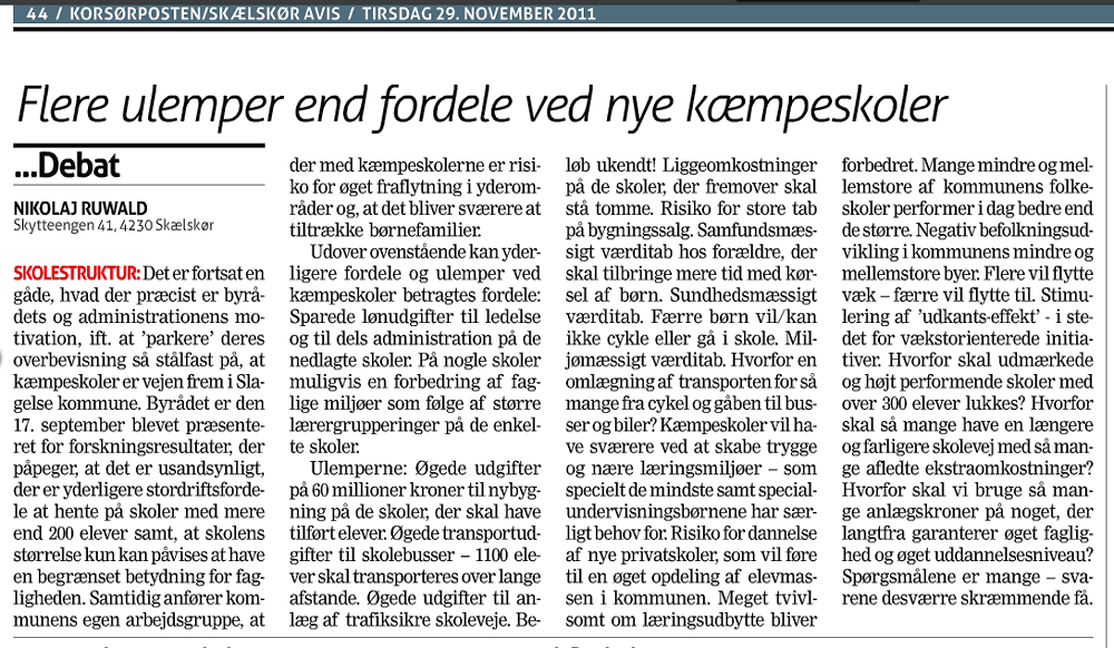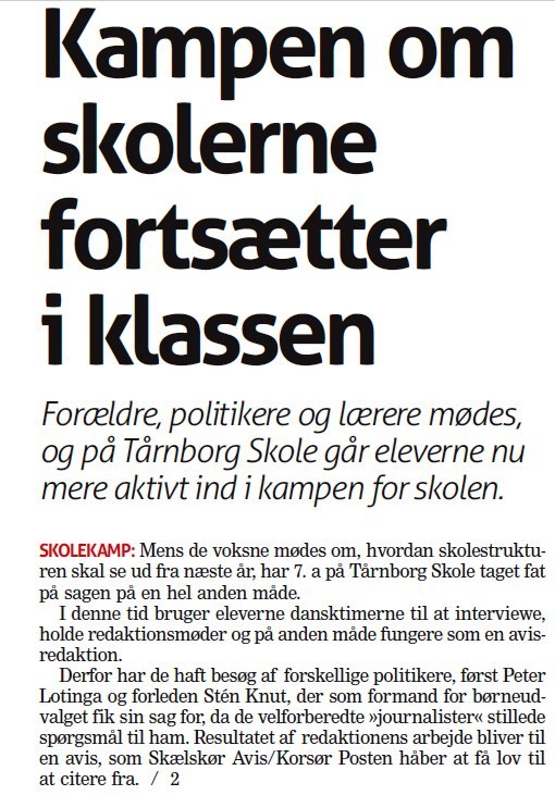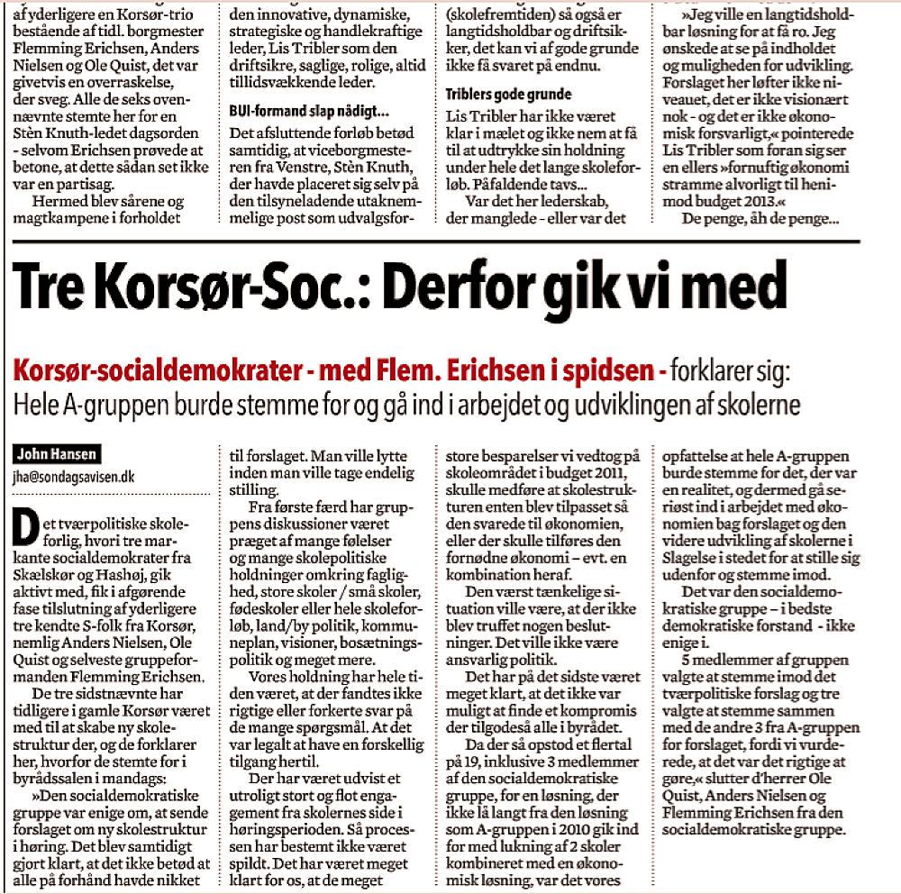 Det kan være morsomt, at kende lidt tilhvordan man tidligereændrede skolepolitik i den gamleKorsør kommune.Her er en artikel bragt afInformations internetavis - webmaster