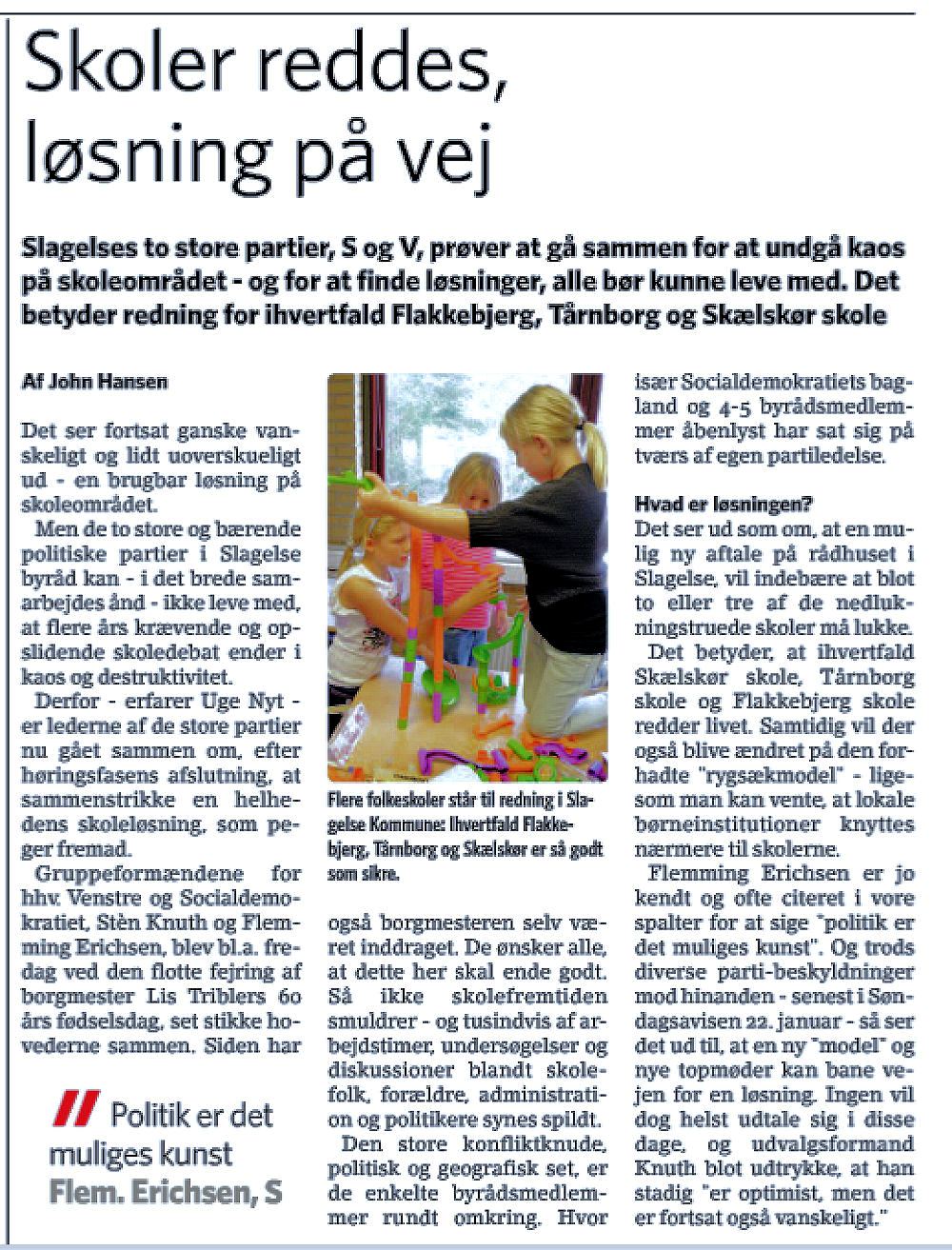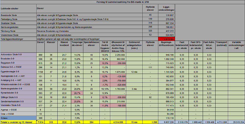 Løsningen lå ikke særlig langt fra den løsning som den socialdemokratiske byrådsgruppe indgik i 2010 med lukning af to skoler kombineret med en økonomisk løsning.