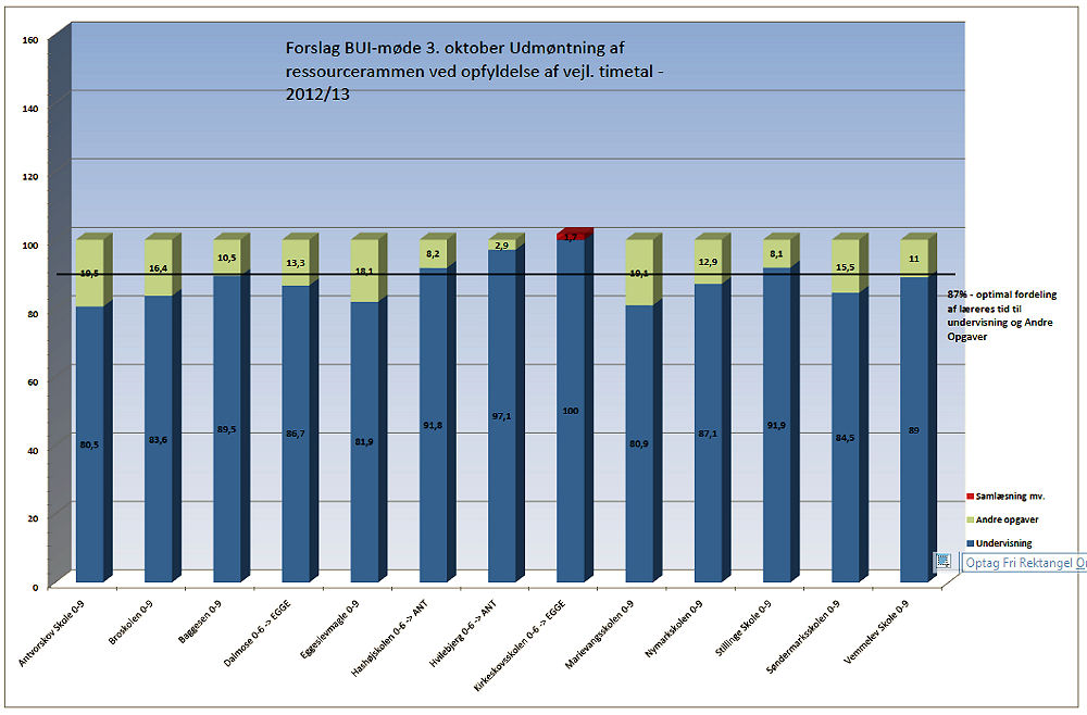 Der er i beregningerne taget udgangspunkt i, at minimum 13 % af lærernes arbejdstid skal kunne anvendes til andre opgaver for at sikre faglig udvikling. Andre opgaver dækker over vejledning, kompetenceudvikling, skole-hjem samarbejde mv.