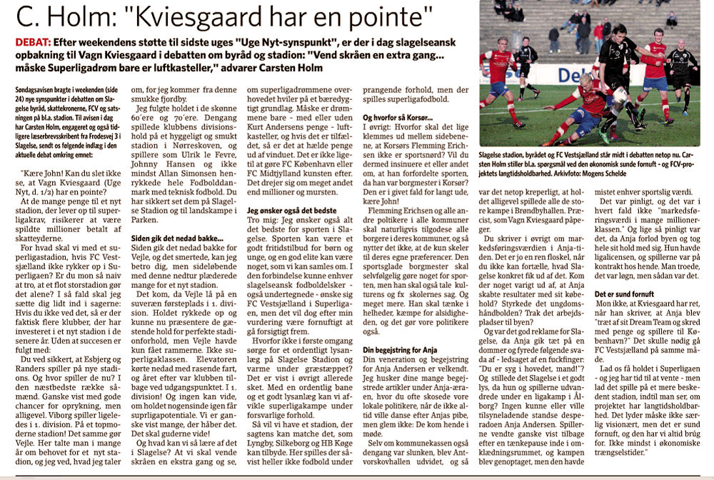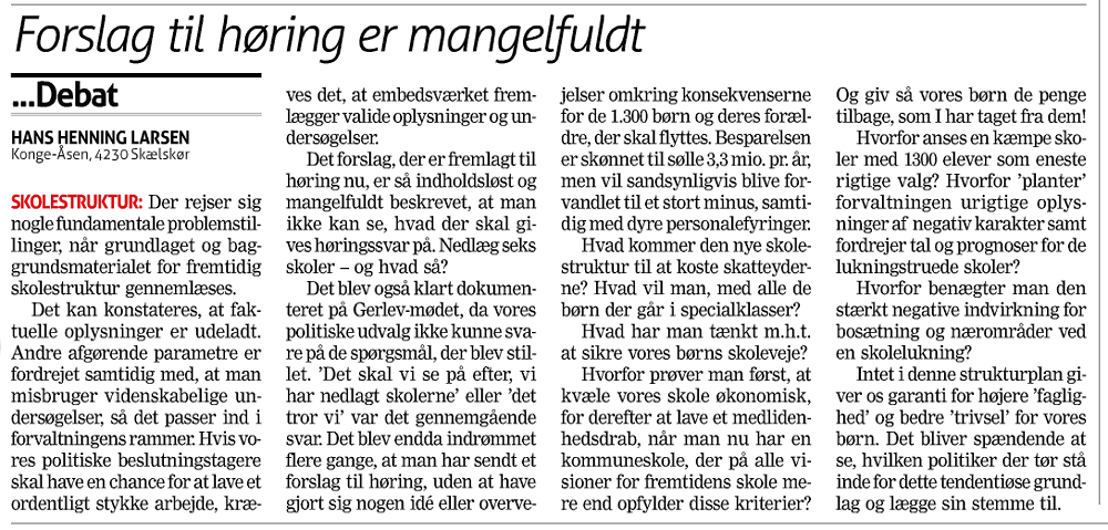 Jeg har lavet et læserindlæg til hjemmesiden og avisen som jeg sender dig som en af de første. (læserindlægget kan du læse i Sjællandske, men du kan se det i et presseklip, som jeg er ved at indsætte på siden - webmaster - DET ER INDSAT PÅ AKTUELT SIDEN nu)
