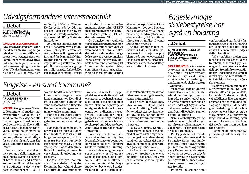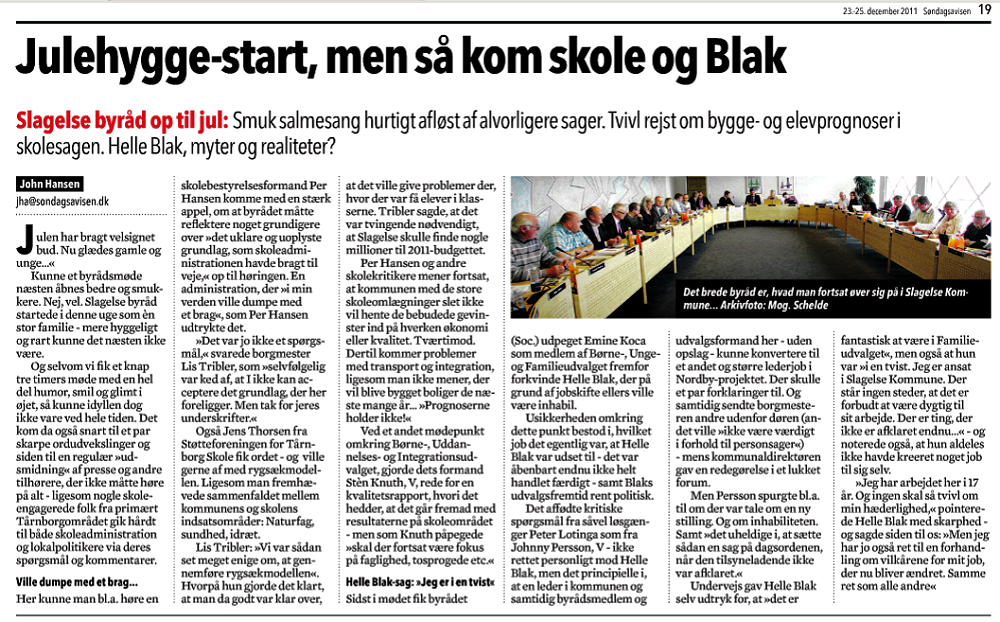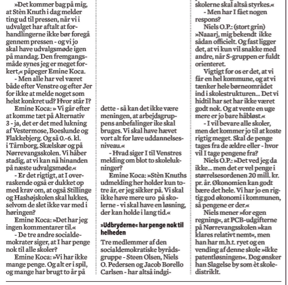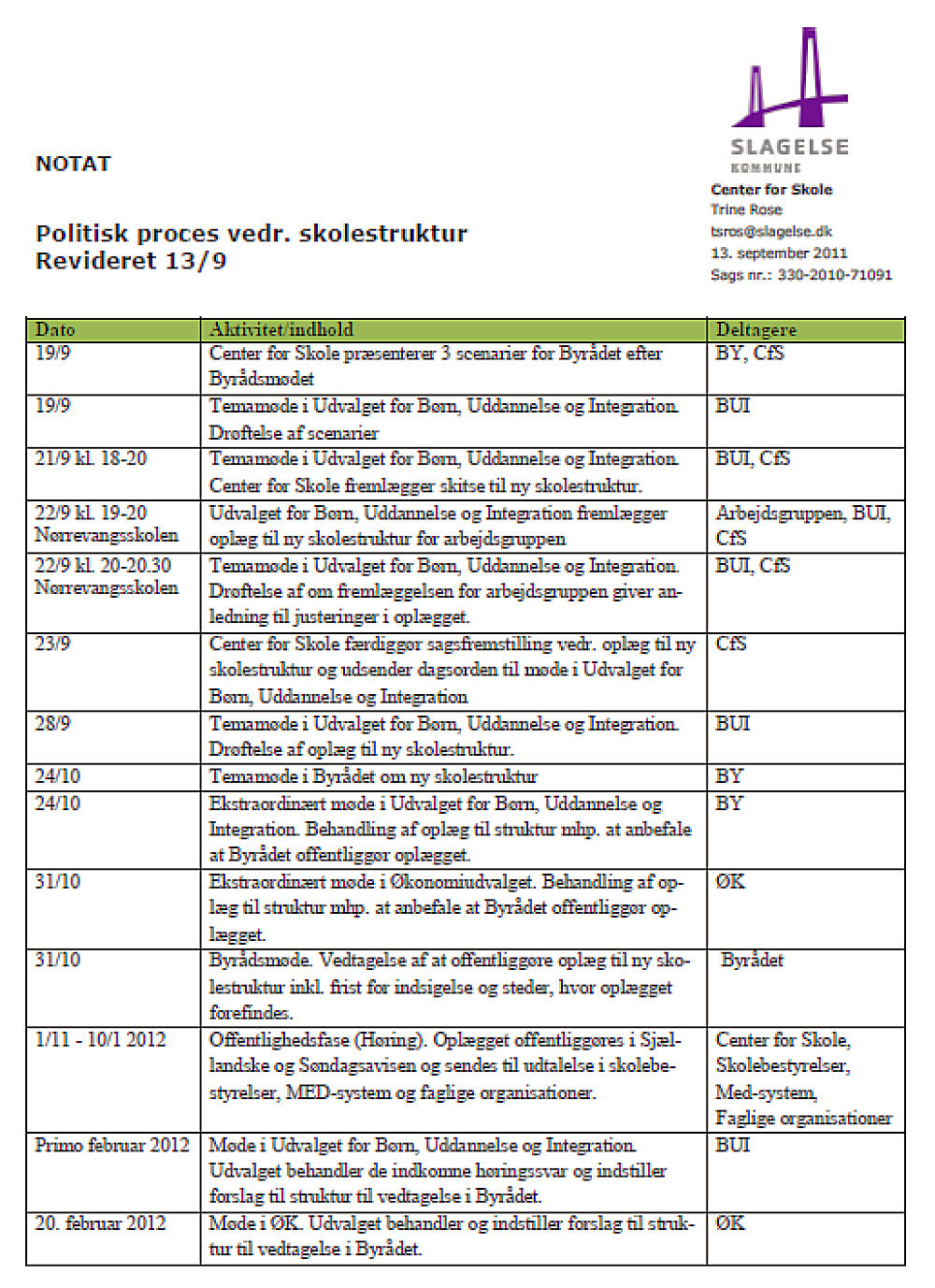 Du kan se dagsordenen/referatet her: http://polweb.nethotel.dk/Produkt/PolWeb/default.asp?p=slagelse&page=document&docId=31003 Der er fremkommet en hel del "morsomme" kommentarer fra byrådsmedlemmer i forbindelse med vedtagelsen af fremtidens skolestruktur. Vi venter lige med bringe disse indtil de er verificerede. Det kan også være de er udtryk for skuffelse over at have lidt nederlag - og det gider vi ikke bringe.