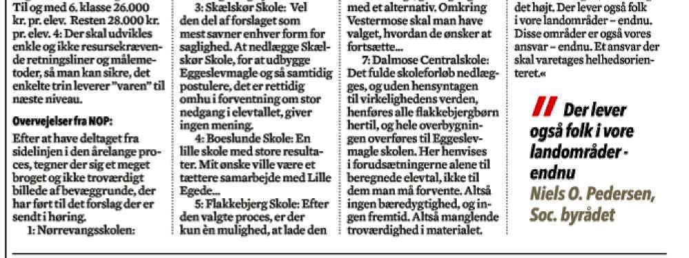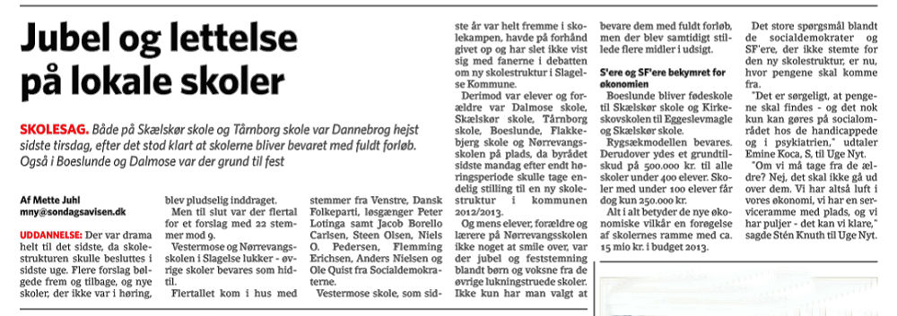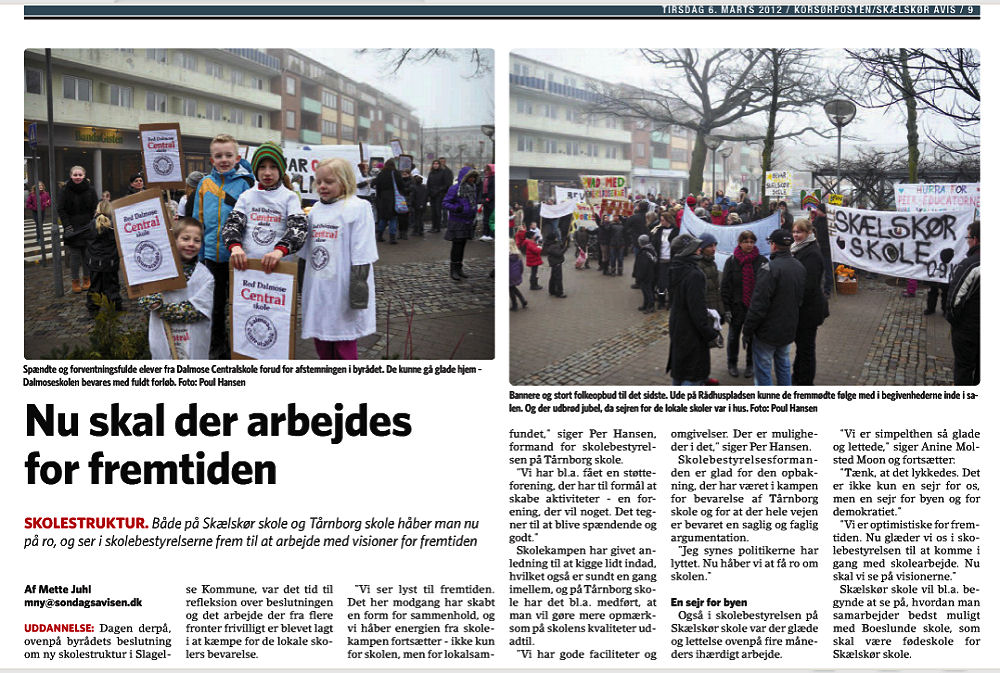 Vi mener man har opnået et godt resultat. Man lukker kun 2 skoler. Det havde ingen gang på jord, at bevare Vestermose Skole og Nørrevangsskolen.