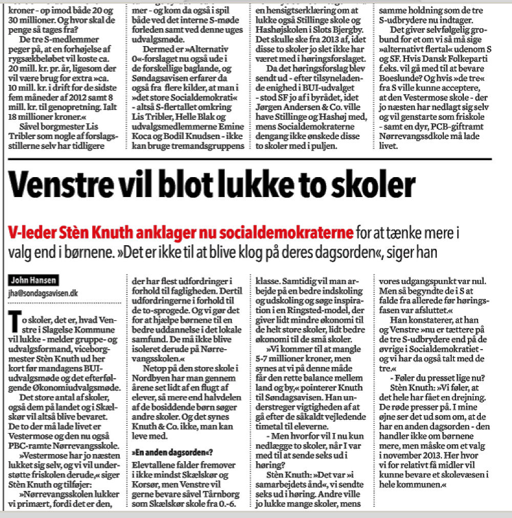 Det bliver utroligt spændende at se hvad man vil anvende Vestermose Skole og Nørrevangsskolen til. Nørrevangsskolen kunne jo blive et glimrende medborger- og kulturhus i Slagelse nordby. Slagelse kommune vil understøtte oprettelsen af en friskole på Vestermose Skole.