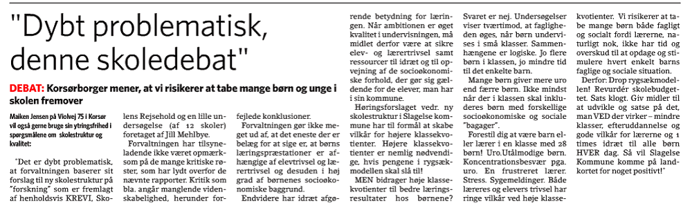 PRESSEN ER FULD AF INDLÆG I SKOLEDEBATTEN : VI VIL IKKE BRINGE DET HELE : MEN GERNE DET VI FINDER BYDER PÅ NYE ARGUMENTER