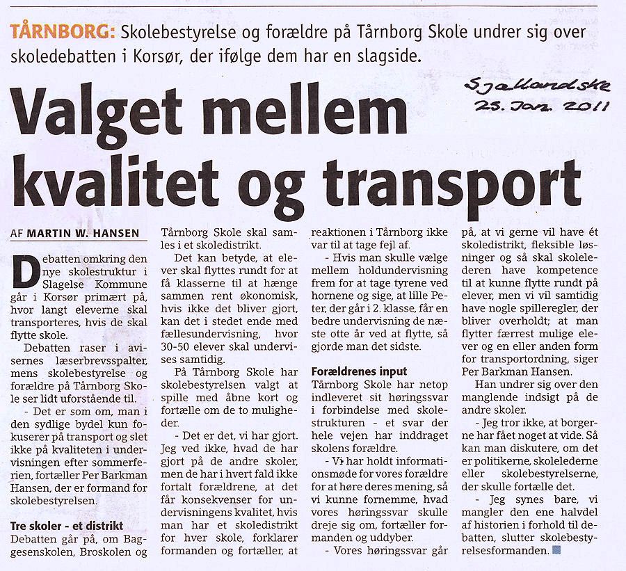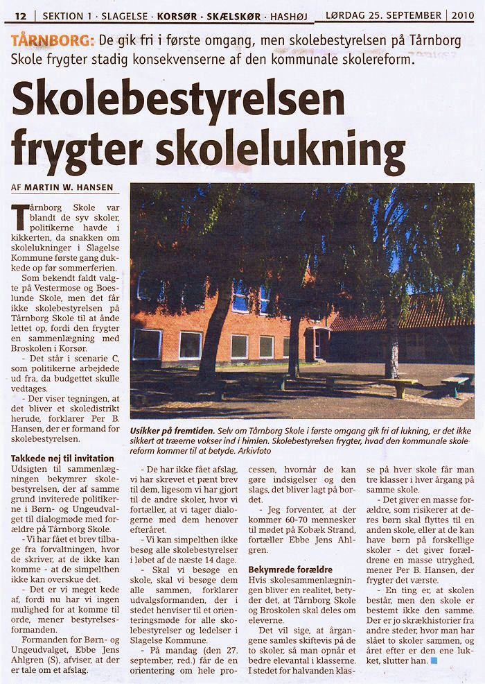Skoleinspektøren på Tårnborg skole kunne dog berolige os med hensyn til det sidste, at den plan er taget af bordet igen - det var bare en streg, der var trukket ved et skrivebord uden den større refleksion.