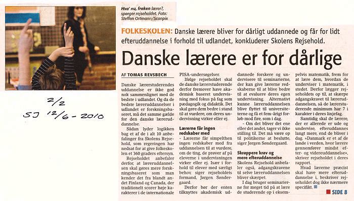 Måske skal de små elever deles op efter læseevne, og måske skal de store undervises sammen alt efter, om de skal i gymnasiet eller vil være håndværkere. Det vil regeringen ifølge Morgenavisen Jyllands-Posten lade være fuldstændig op til den enkelte kommune og den enkelte skole. Indsat af webmaster den 14. november 2010 |