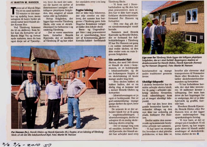 Vore lokale folk Per Hansen, Henrik Olsbro og Henrik Kjærside (som alle kender som drivkraften bag Tårnborg Revyen) var tidligt ude og påpege det væsentlige i sagen. Tårnborg Skole er i bygningsareal kommunens største med omkring 5.500 etagekvadratmeter - grunden skolen ligger på er også den største skolegrund på hele 98 tønder land og så hænger skolen sammen med idrætshallen og de øvrige idrætsanlæg - det er nemlig sammentænkt. Er det ikke tankevækkende, at hvis vi ikke havde en privatskole i vort lokalområde i Forlev - så manglede vi ikke elever på vor kommuneskole. Det er også fint, at vi lige får omtalt Solgården som absolut skulle sælges og nu henligger som en bygning i forfald. Det er et trist syn - det var tidligere plejehjem med den skønneste udsigt fra værelserne du kan tænke dig. Nu er den øde og tom.