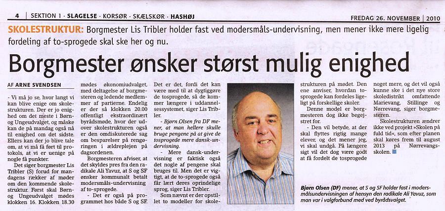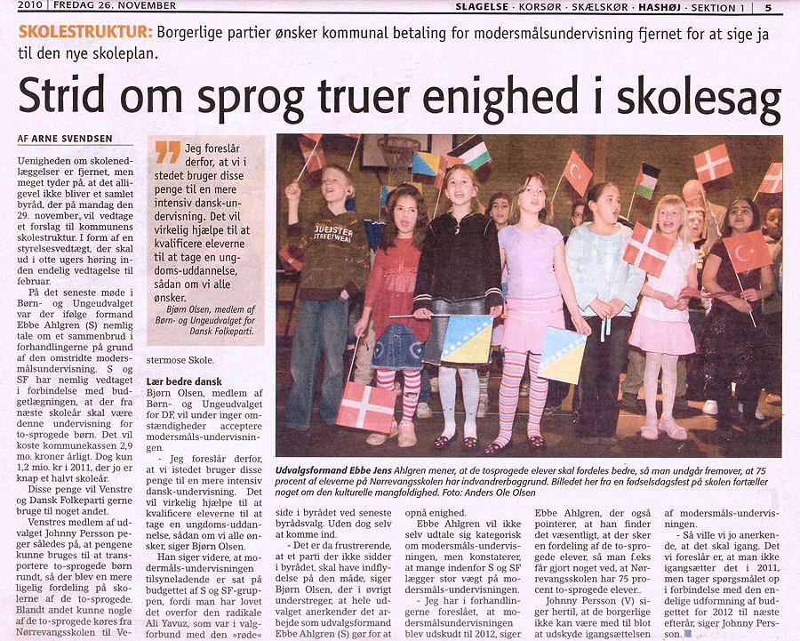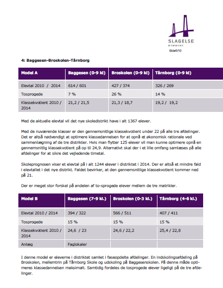 Det er ikke tilfældet med alle de foreslåede nye distrikter. Vi køber ikke politikernes præmis med, at der er skoler, der i Slagelse kommune har et to-sprogsproblem, der skal løses ved kunstige skoledistrikter.